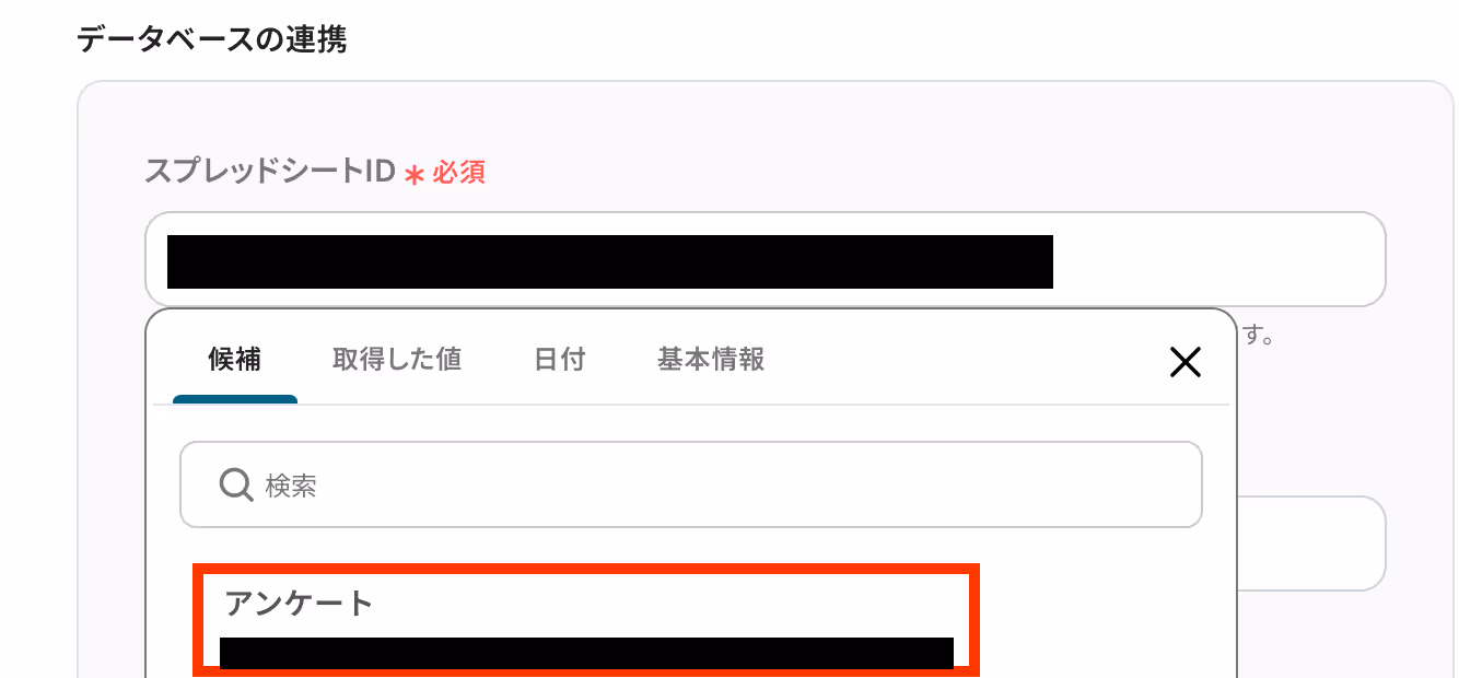 「スプレッドシートID」は候補から選択してください。