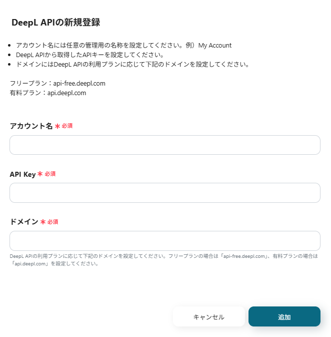 ・Googleフォーム、DeepL、NotionのそれぞれとYoomを連携してください。