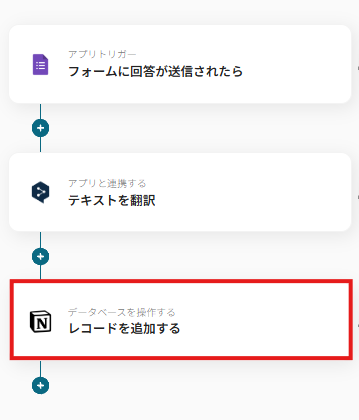 Googleフォームの外国語回答をDeepLで翻訳しNotionに追加するフローです。