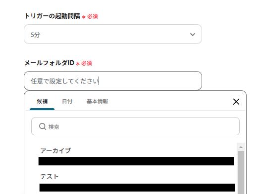 「トリガーの起動間隔」は5分、10分、15分、30分、60分の間隔で起動間隔を選択できます。