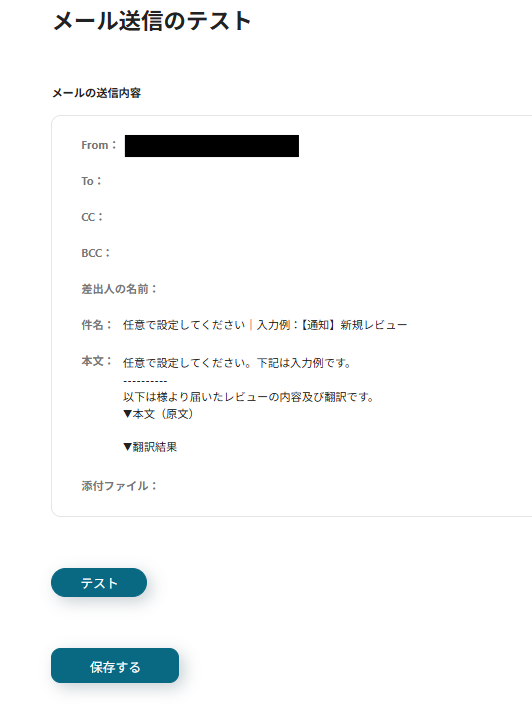 「To」には、翻訳した内容を送信するメールアドレスを設定してください。