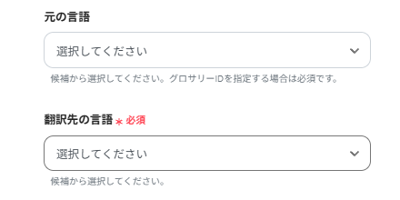 「元の言語」と「翻訳先の言語」はそれぞれ候補から選択してください。