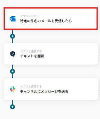 Outlookのトリガーを設定します。「特定の件名のメールを受信したら」をクリックしてください。
