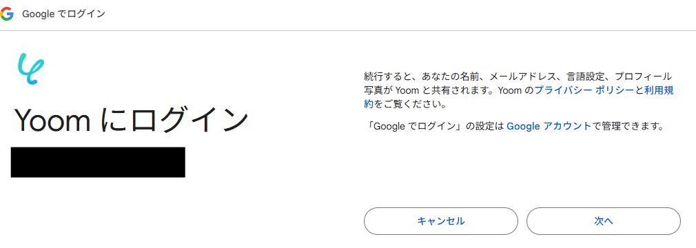 ログインするアカウントを選択し、「次へ」をクリックします。