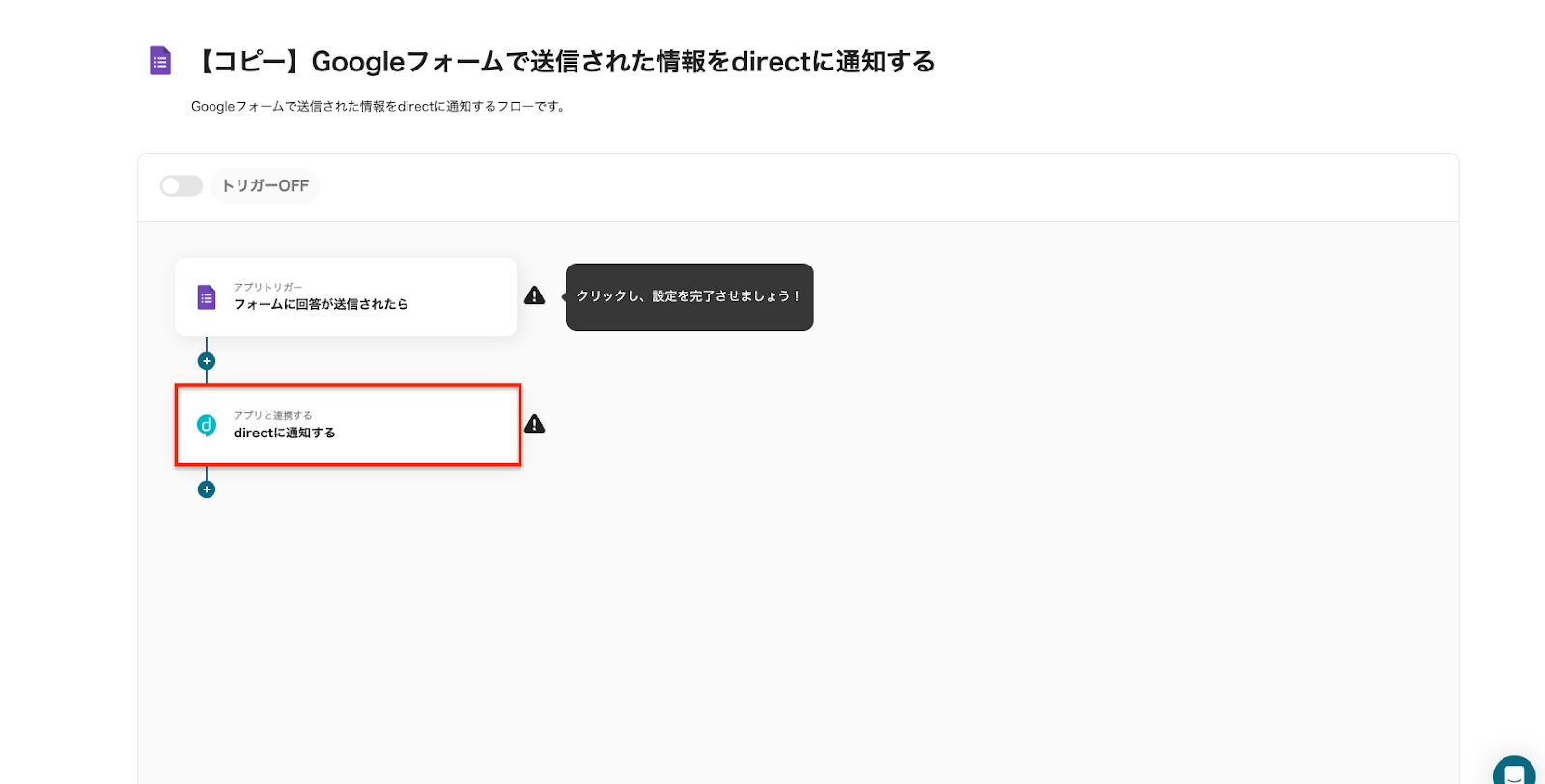 これで、Googleフォームで送信された情報がdirectに自動通知されます。
