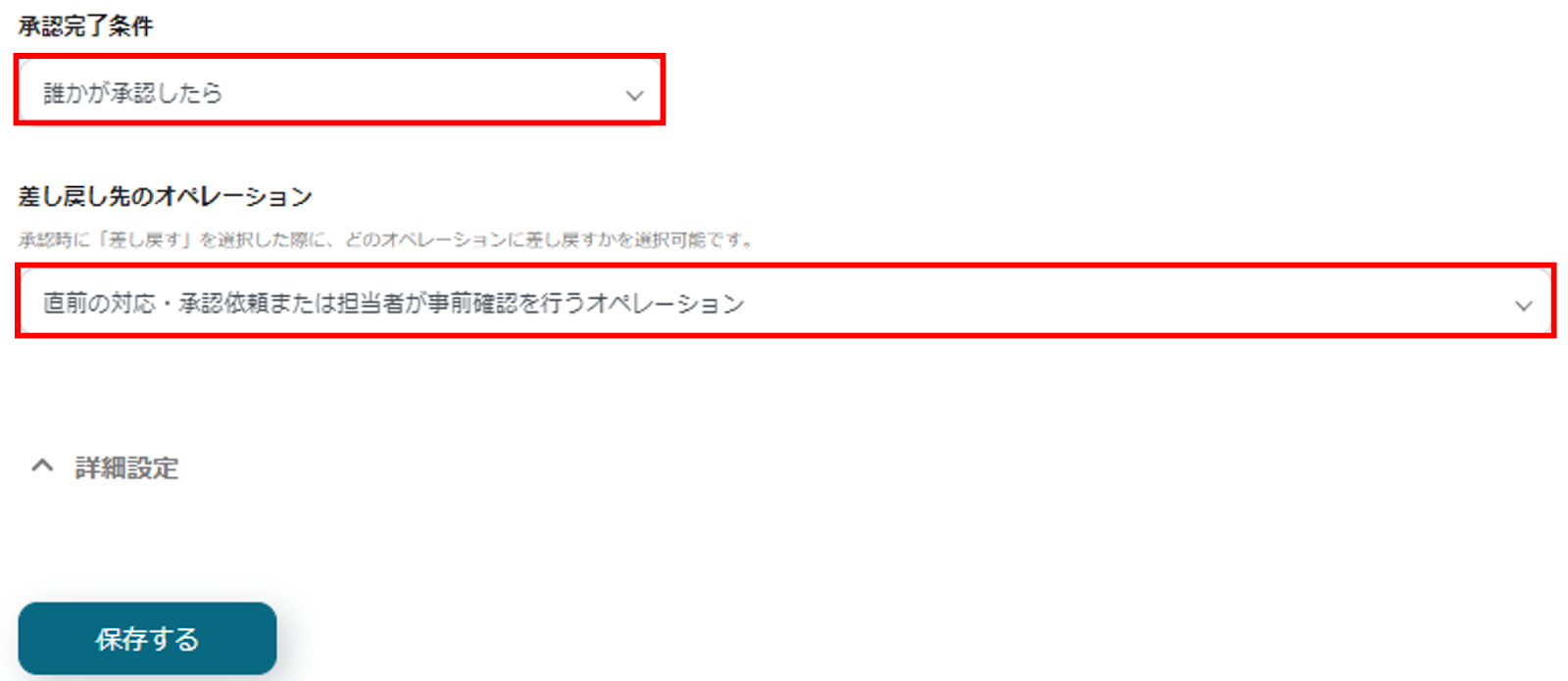 (5)承認完了条件は、プルダウンメニューから任意で選択