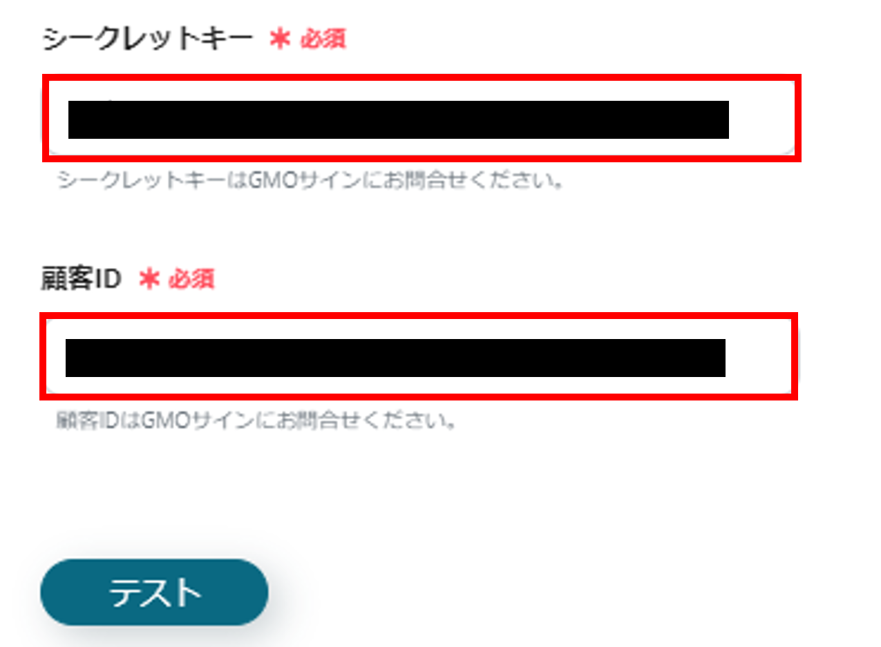 - GMOサインをYoomと連携する際に、ご利用の環境に応じたシークレットキーや顧客ID、アクセストークンなどを設定してください