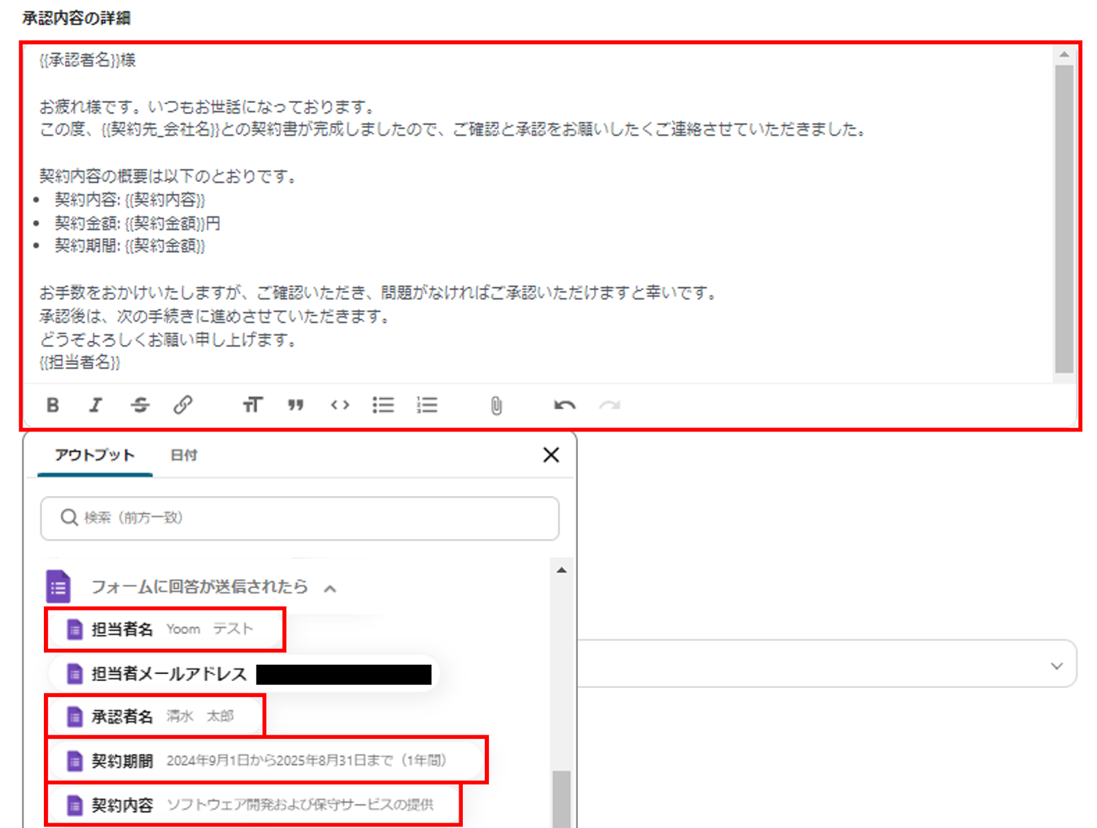 (4)承認内容の詳細は、承認内容の詳細は任意で設定してください。