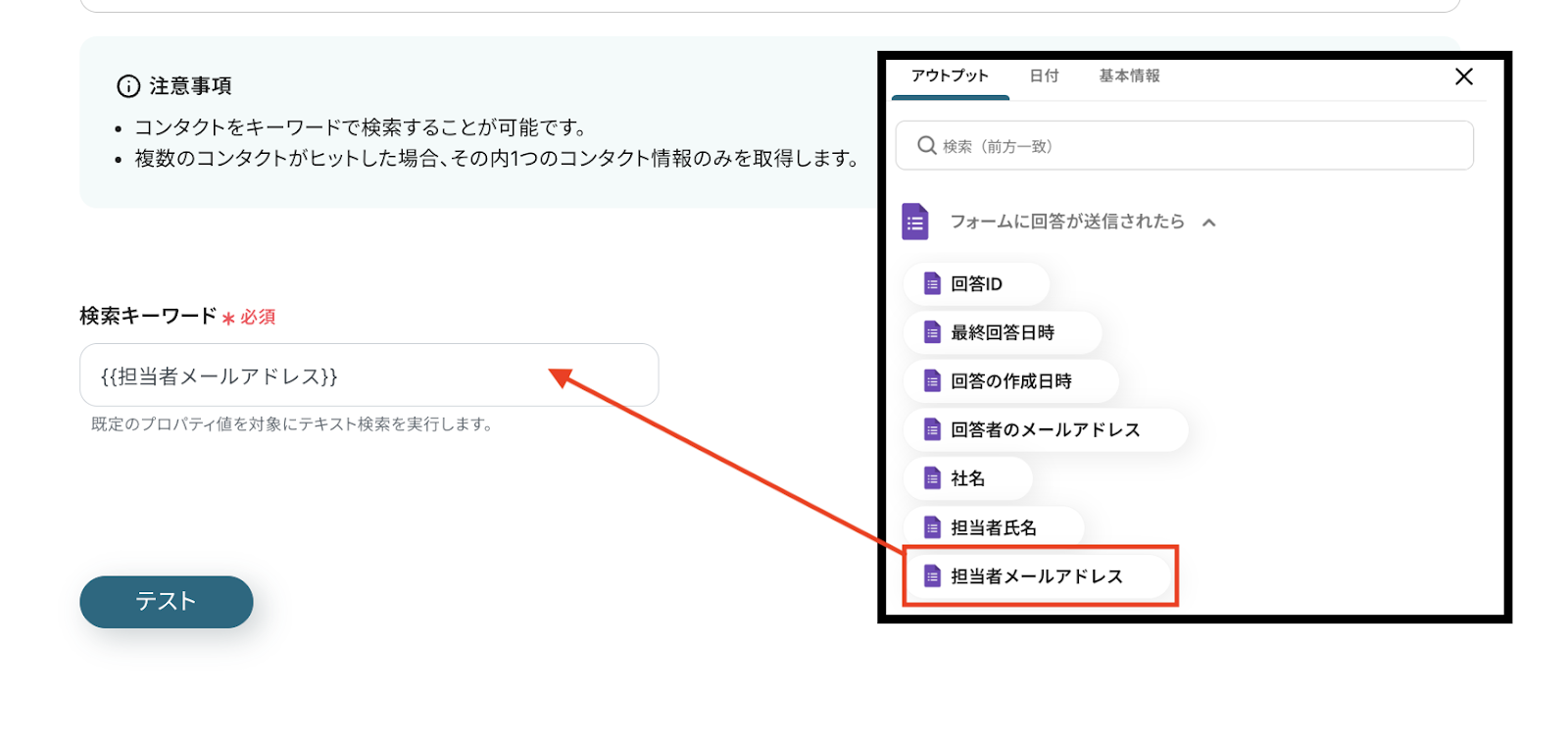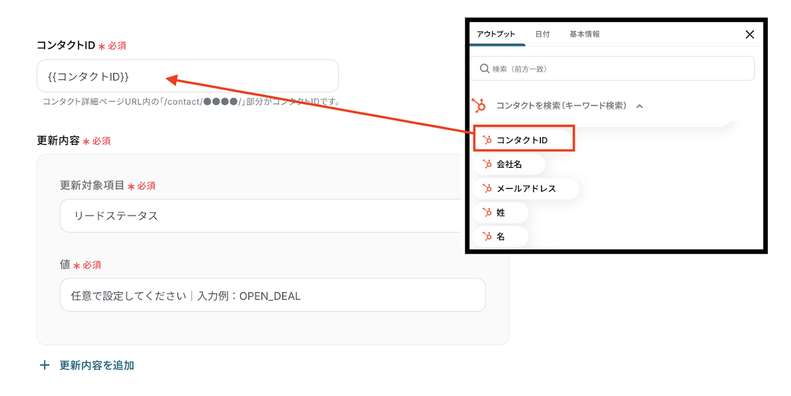 以下は、2つ目のステップで取得した【コンタクトID】を引用したものです。