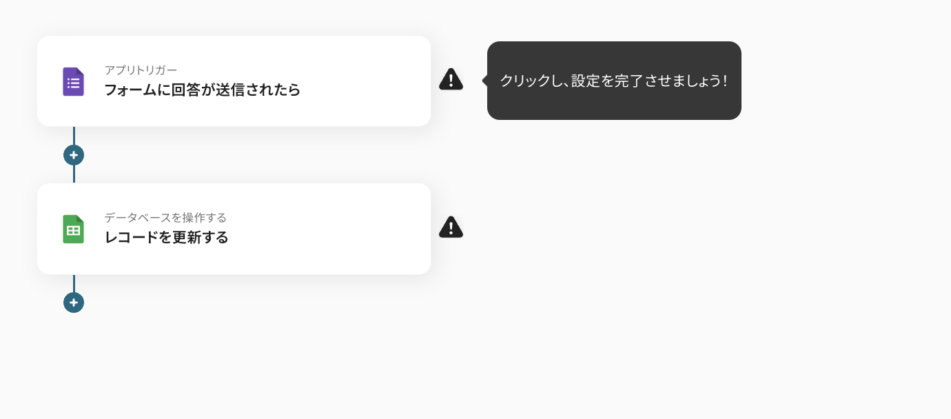 コピーが完了したら、ステップ1のGoogleフォームの設定までは同じステップになるので、そのあとのレコードを更新するNotionの設定から説明していきます。