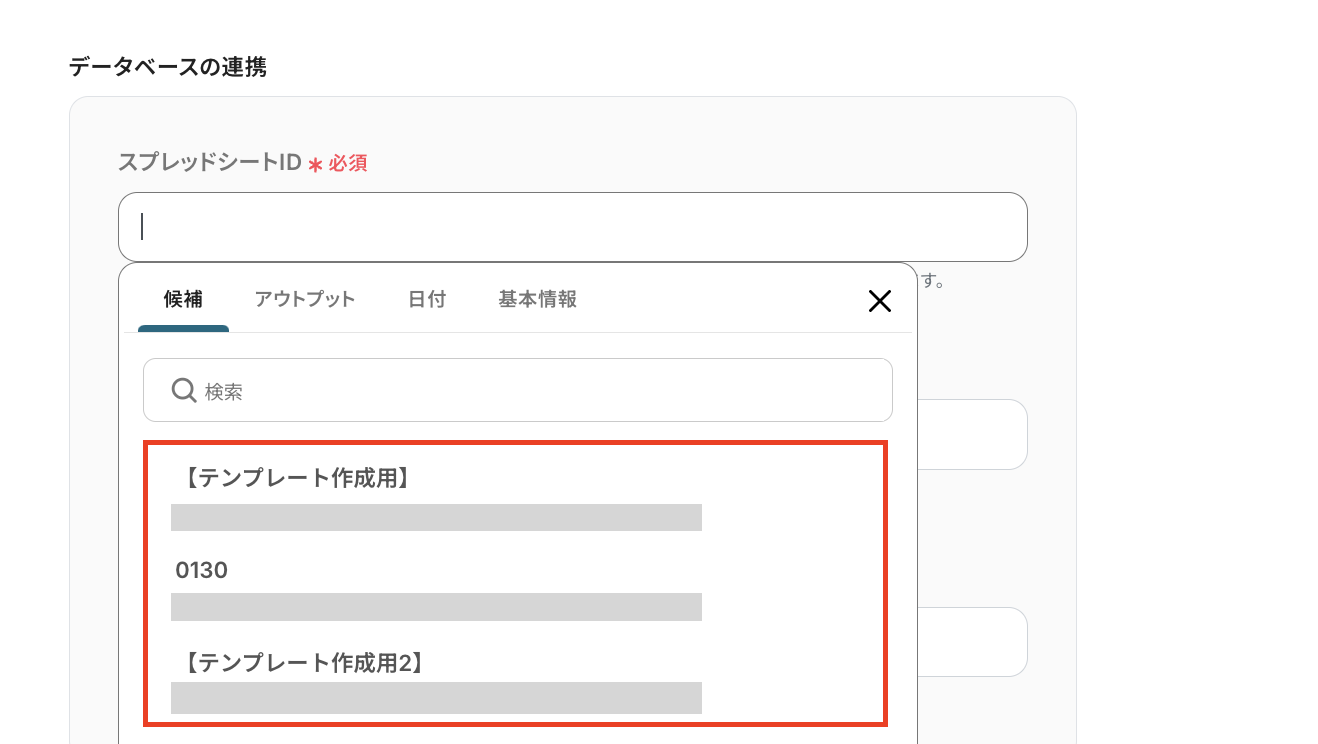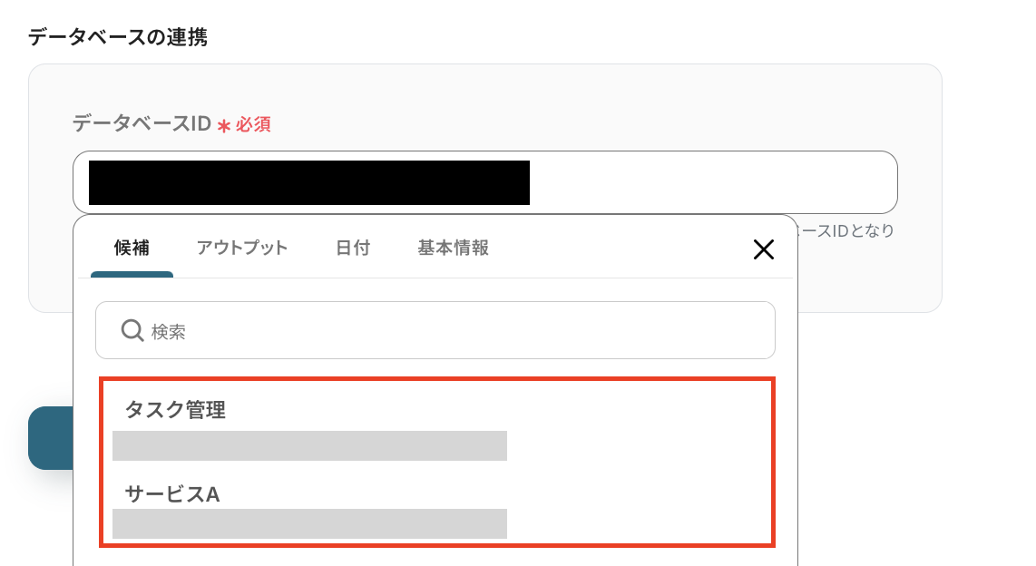 (2)連携するアカウント情報を入力し、データベースIDを「候補」から選択、もしくは任意の情報を入力します。