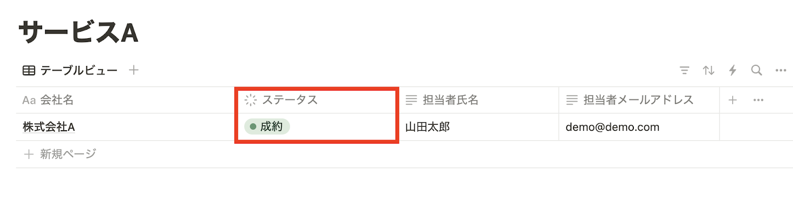Googleフォームで「同意する」と回答された後、赤枠のステータスが『成約』に更新されることを想定してフローボットを作成していきます。