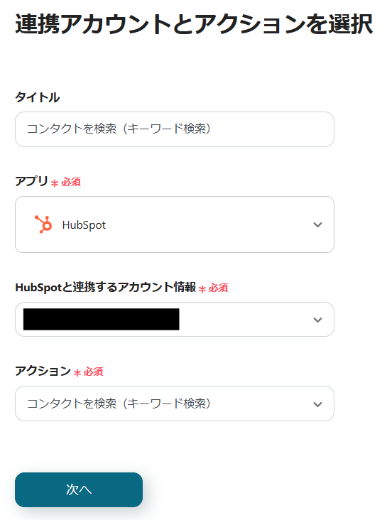 6.HubSpotと連携するアカウントを確認し、「次へ」をクリックします。