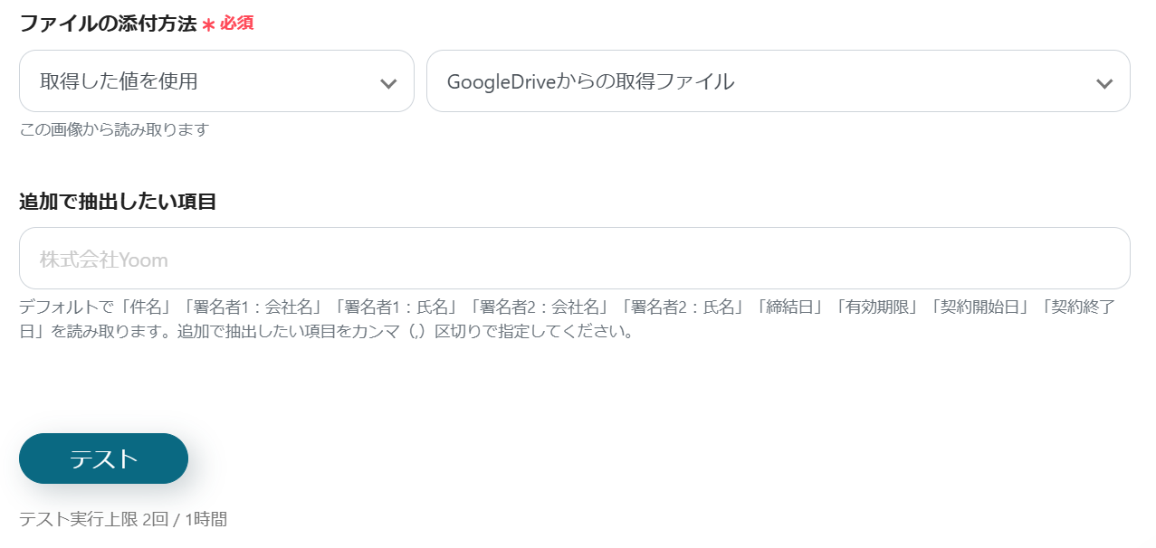 GoogleフォームのAPIを介して契約書を受信し、Yoomが提供するOCR機能を組み合わせて契約書を読み取ることで実現できます。