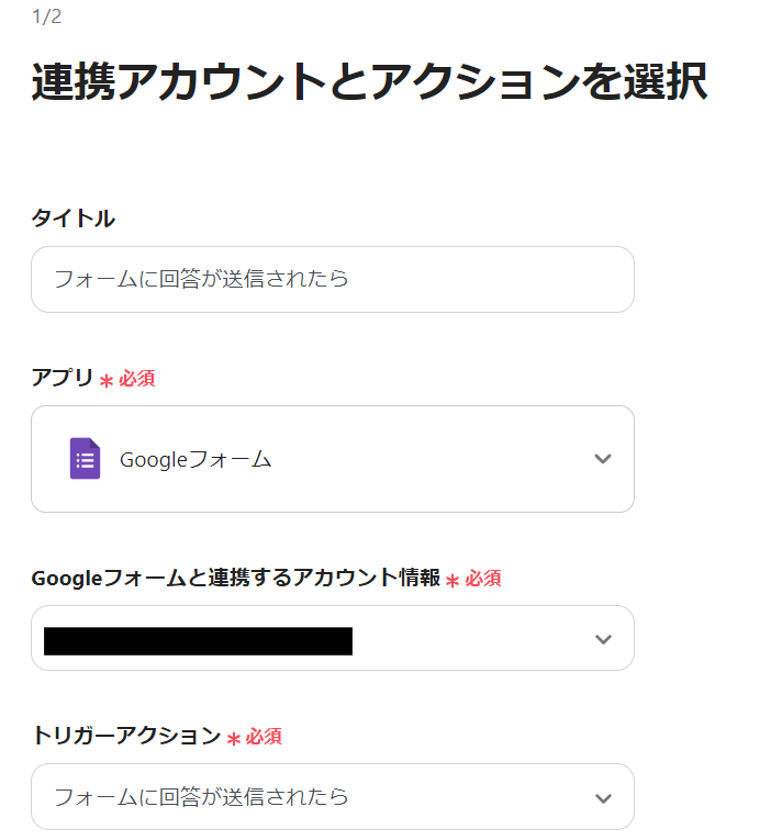 4) トリガーアクションは「フォームに回答が送信されたら」を選択して、「次へ」をクリックします。