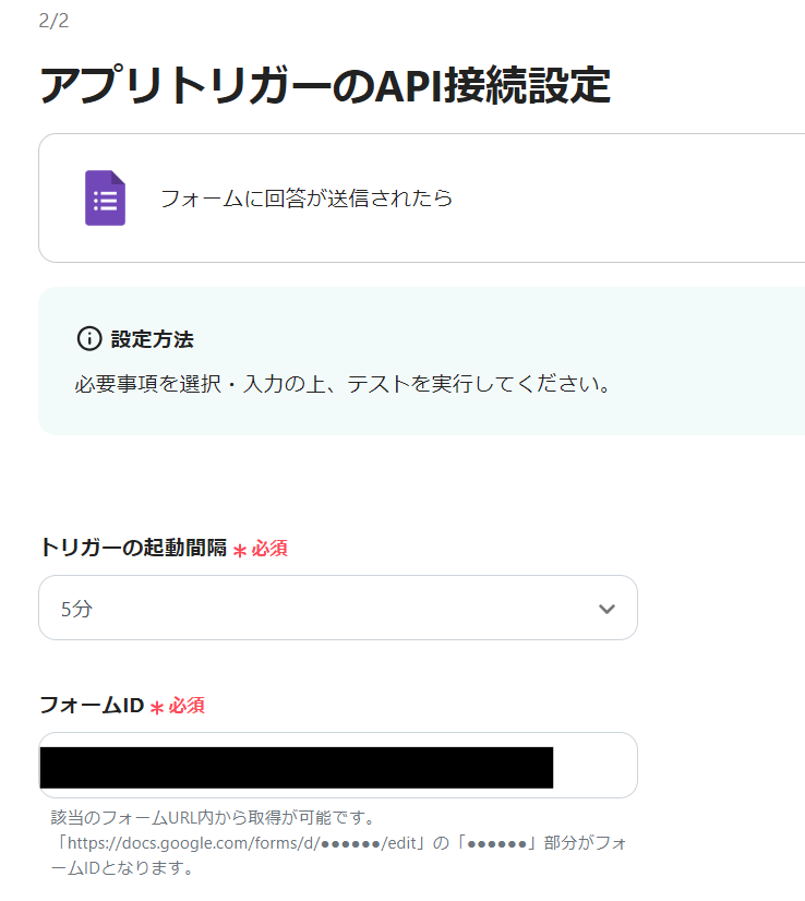 5)トリガーの起動間隔を選択し、フォームIDを入力します。
