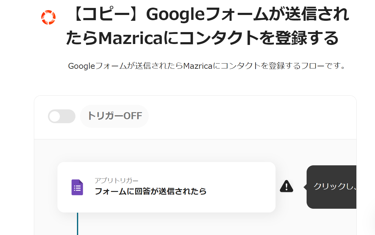 今回は、【Googleフォームが送信されたらMazricaにコンタクトを登録する】というフローを作成します。