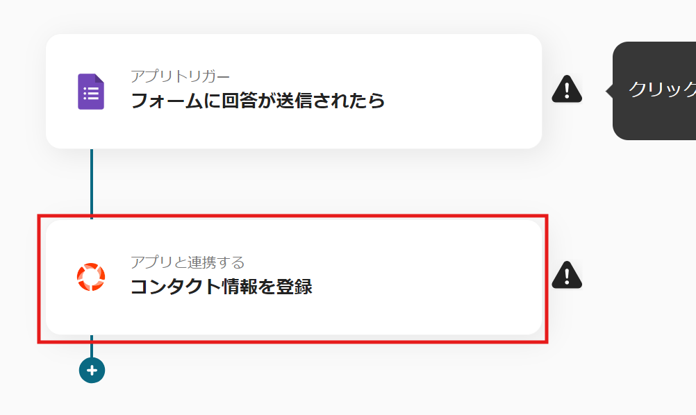6) フローに戻り、「アプリと連携する コンタクト情報を登録」のアイコンをクリックします。