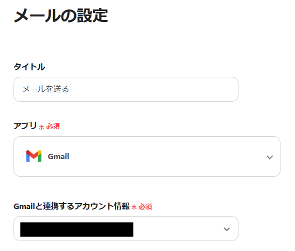 2.Gmailと連携するアカウントを確認します。 ※その他の項目はデフォルトで設定されています。