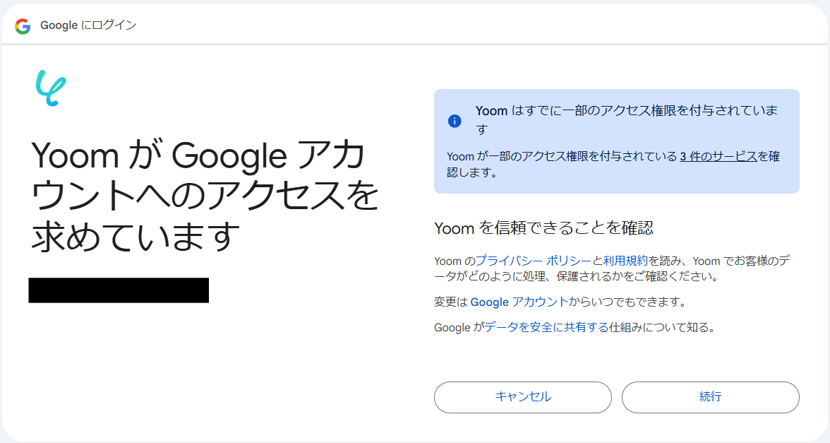 ・サインイン後、続く画面でボックスにチェックを入れ、「続行」をクリックすると、マイアプリに登録が完了します。