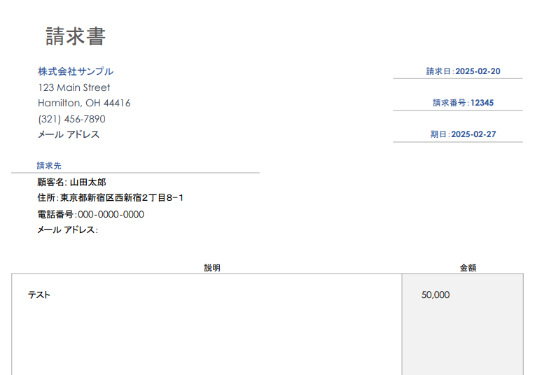設定した通りに請求書が作成されました。
