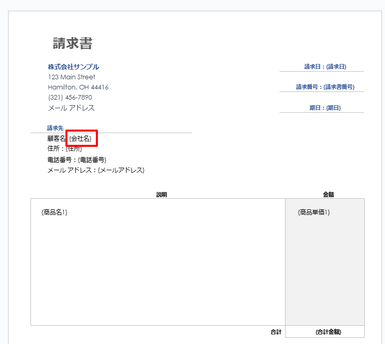 次に、取得した情報を元にひな形を作成して書類を発行しましょう。(ひな形の作成はこちらを参考にしてください。)