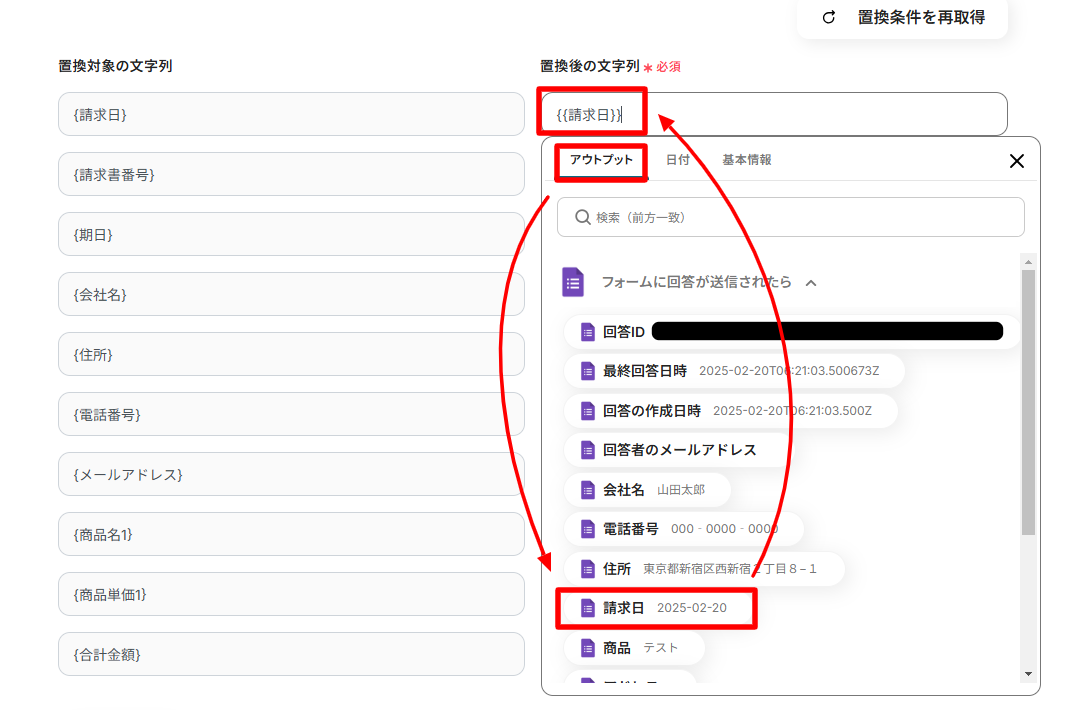 「置換条件を取得」をクリックしてください。