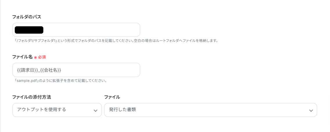最後の設定は、発行した書類をDropboxにアップロードするものです。
