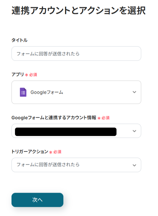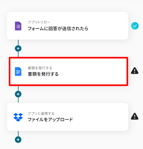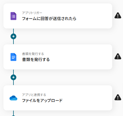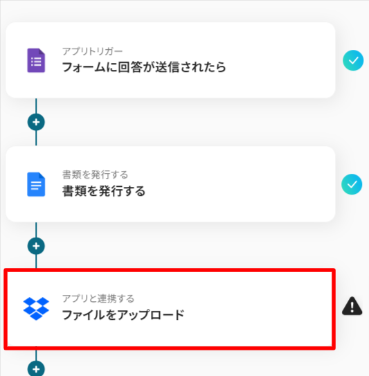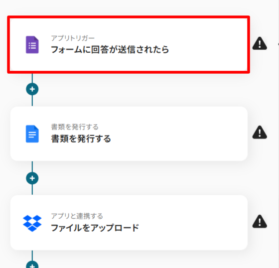フォームに書類を添付して、回答を送信することがトリガーになります。