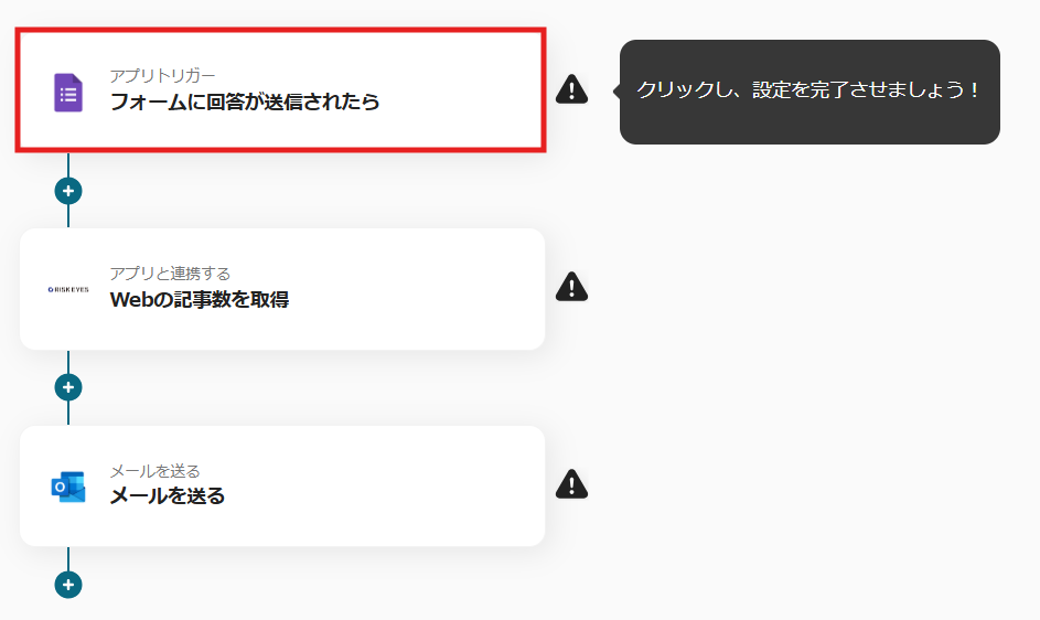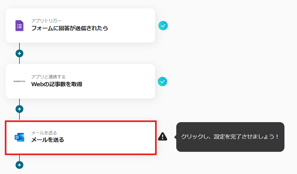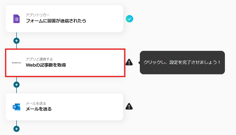 これで【Googleフォームで回答された内容をもとにRISK EYESで反社チェックを実施し、結果をOutlookで通知する】というフローが完成です。