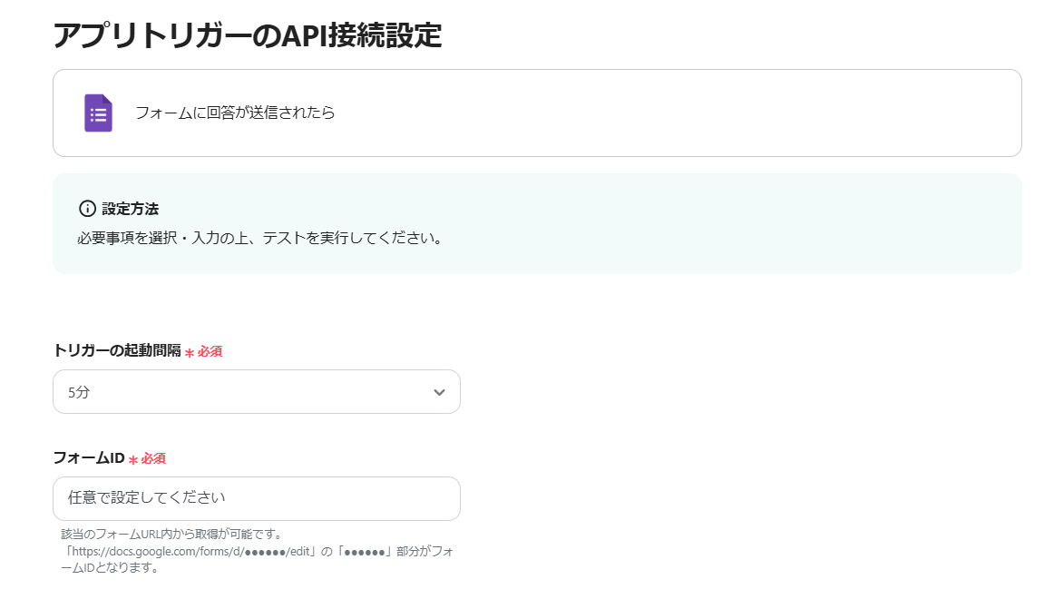 フォームIDはアプリ登録ができていれば候補から選択できます。
