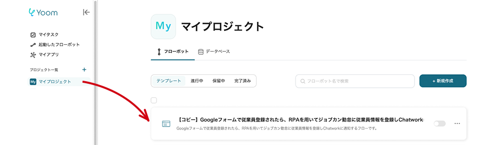 ステップ2 Yoomのフローボットテンプレートをマイプロジェクトへコピーする