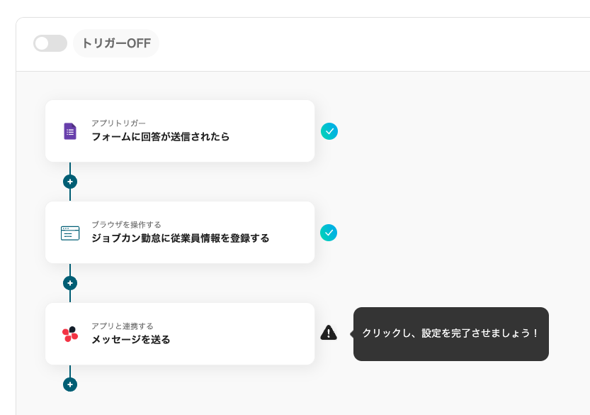 - フォームトリガー・ブラウザ操作・アプリ連携