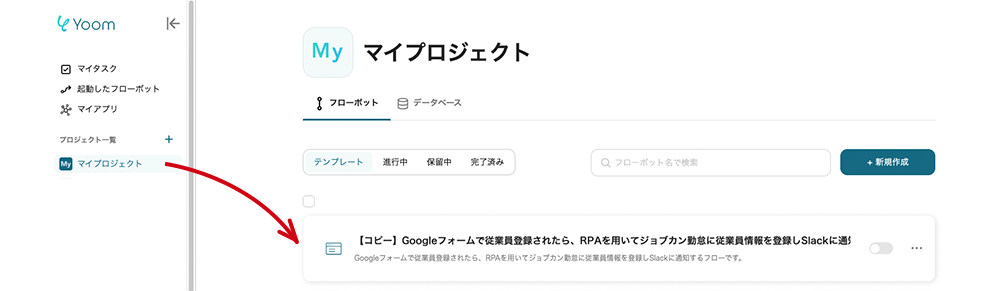 ステップ2 Yoomのフローボットテンプレートをマイプロジェクトへコピーする