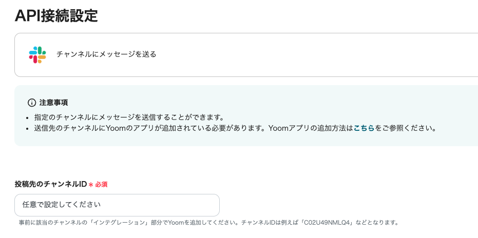 - 編集欄をクリックすると、連携したSlackのアカウントからチャンネルの候補一覧が表示されます。該当のチャンネルを選択すると、自動でIDが引用されます。