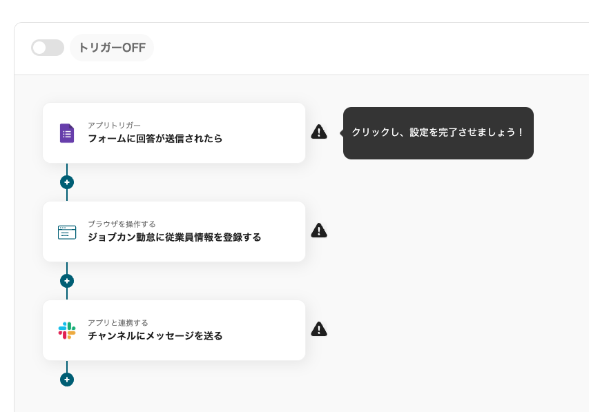 - フォームトリガー・ブラウザ操作・アプリ連携