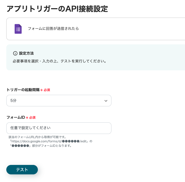 ステップ3 アプリトリガー「フォームに回答が送信されたら」