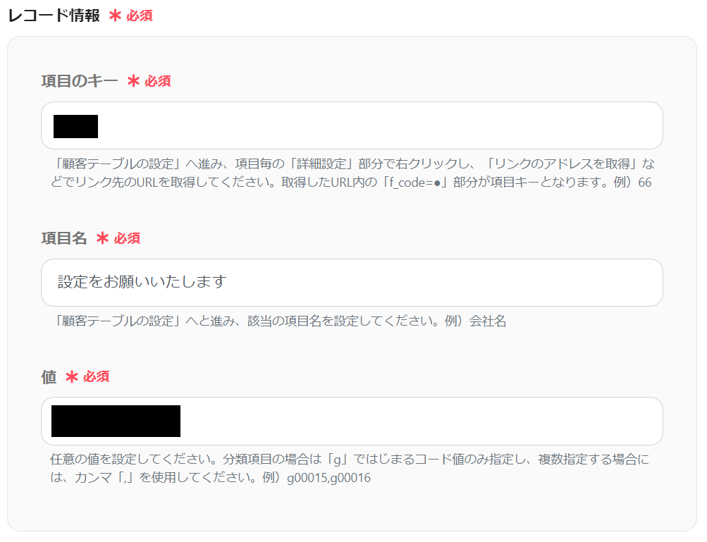 以下の画面に移行するので、「レコード情報」の設定をしましょう。