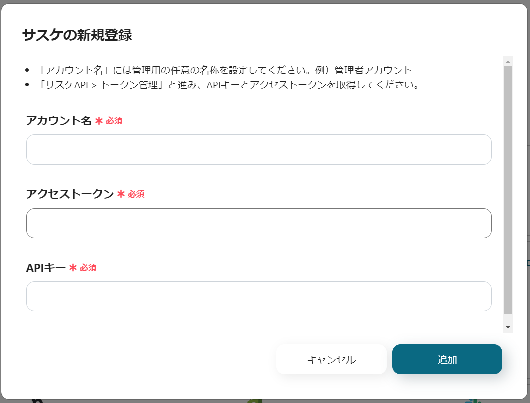 GoogleフォームとサスケをYoomに接続するマイアプリ登録を行います。