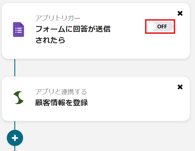 本記事では「Googleフォームが送信されたらサスケにリードを登録する」フローをご紹介します。