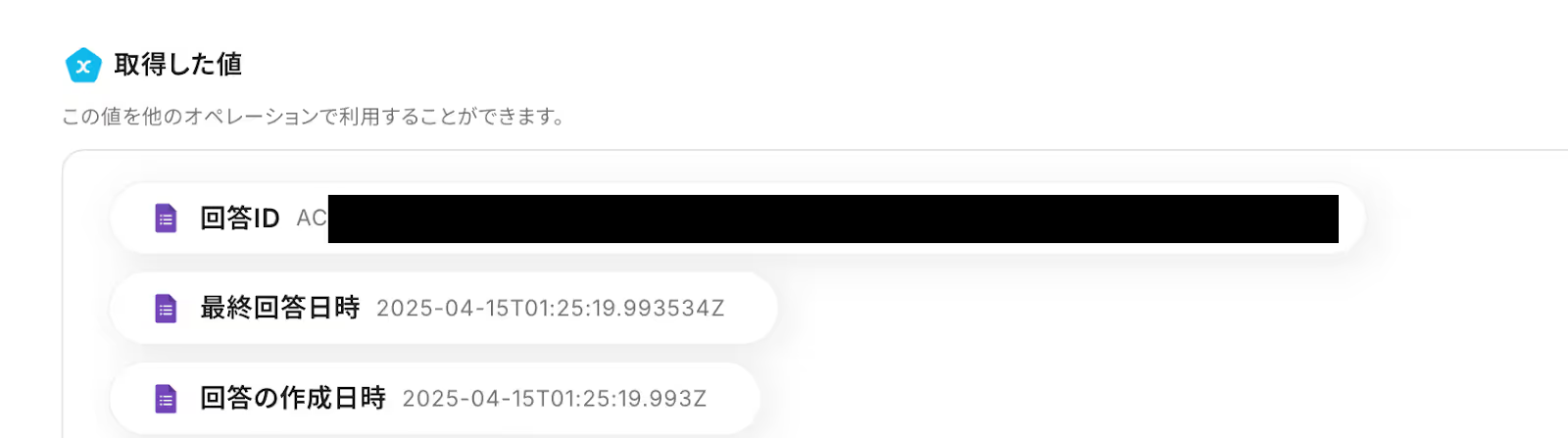 取得した値は、この後のステップで引用・活用できます。