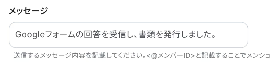 ・メッセージ内容:①で取得したアウトプット含め、任意の文字列を入力します。