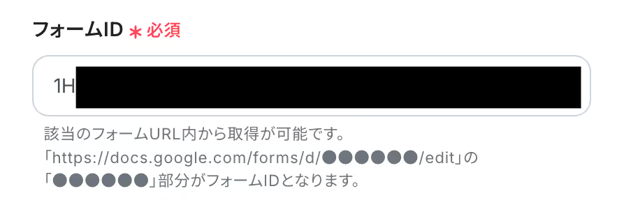 連携したいGoogleフォームの「フォームID」を入力します。