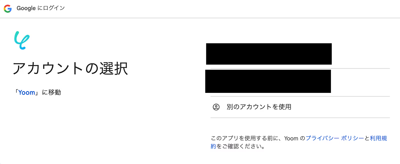 Yoomとの共有に関する画面が表示されたら、内容を確認のうえ「次へ」を押します。