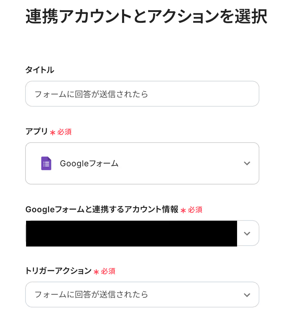 詳しい設定方法は、Googleフォームトリガーで、回答内容を取得する方法をご参照ください。
