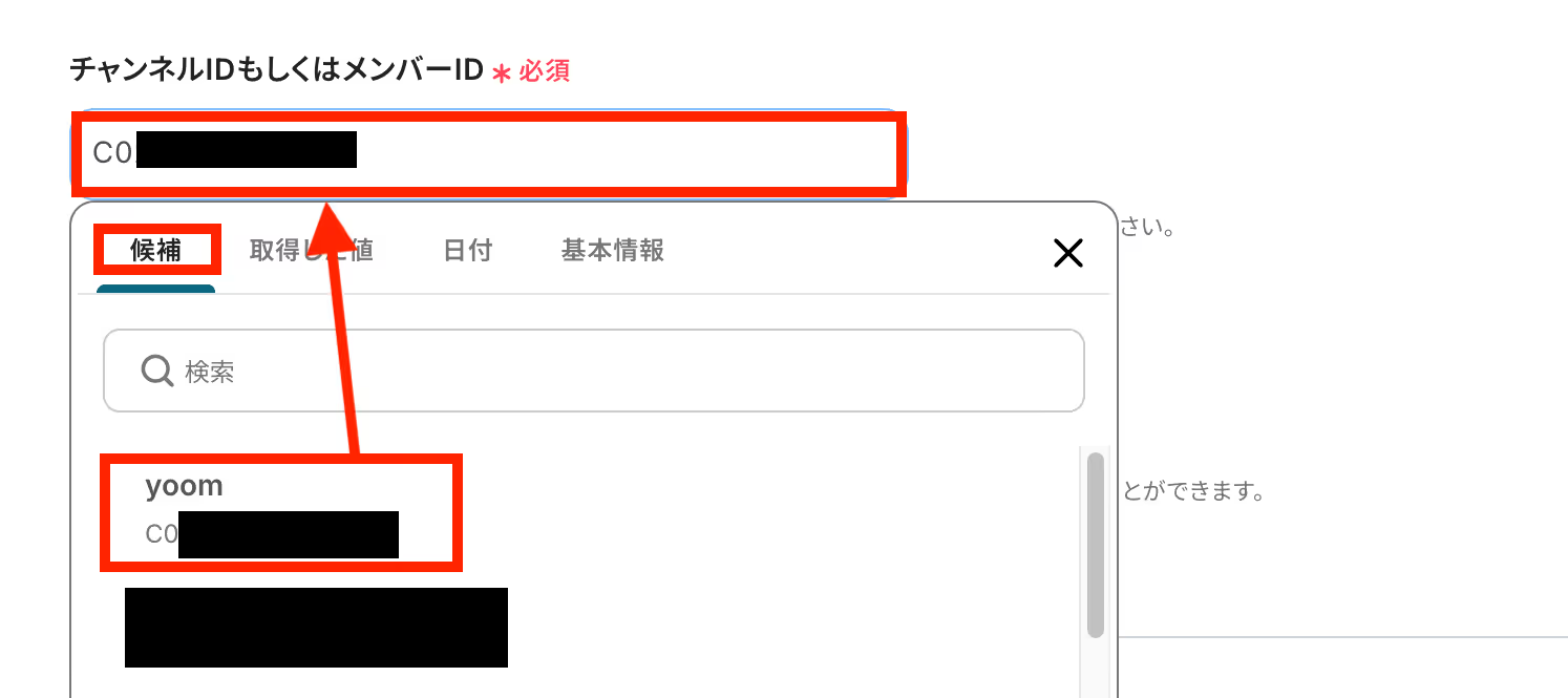 ・投稿先のチャンネルID:指定のチャンネルIDを候補から選択します。