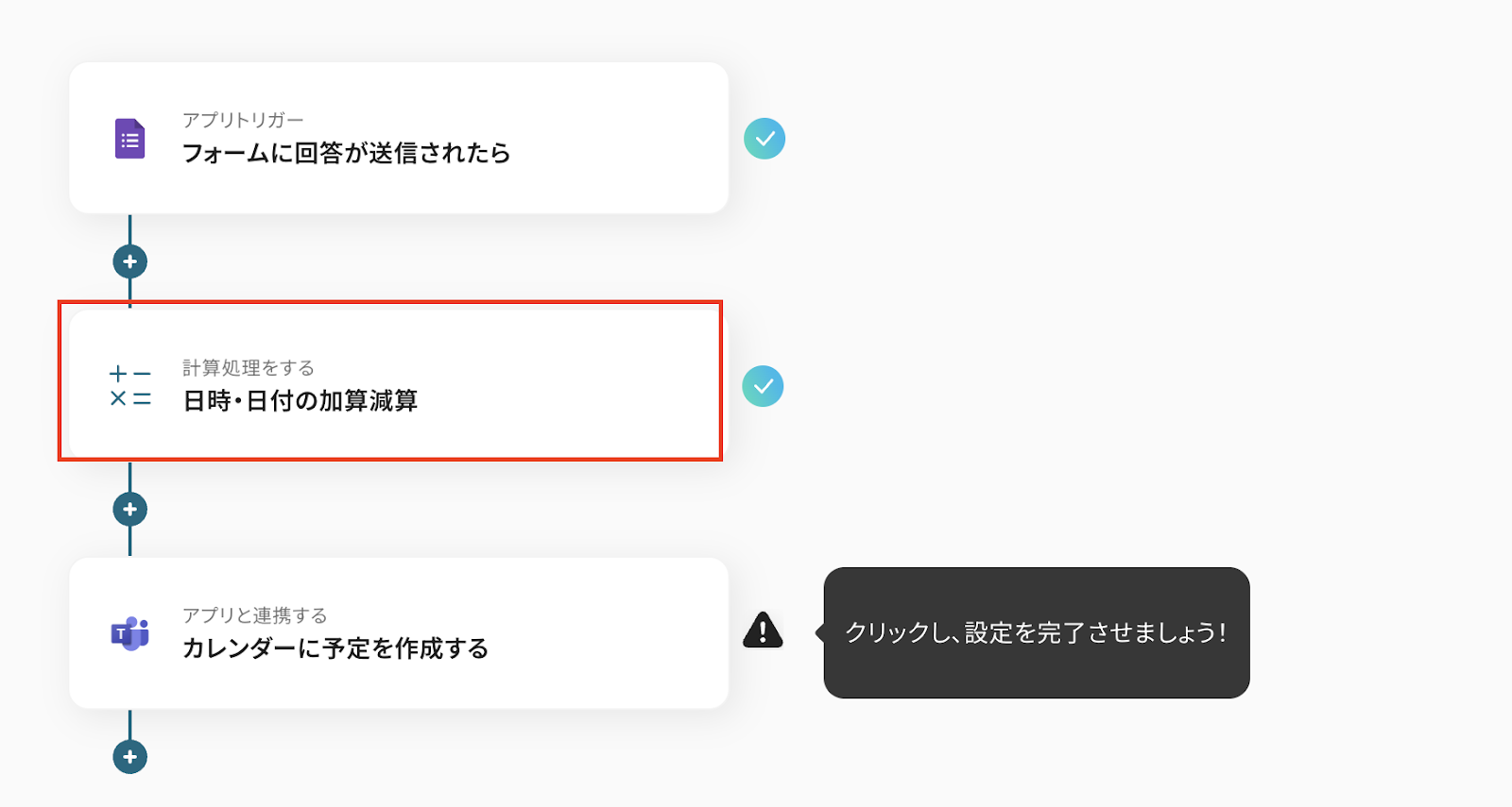次に「日時・日付の加算減算」をクリックし、設定します。