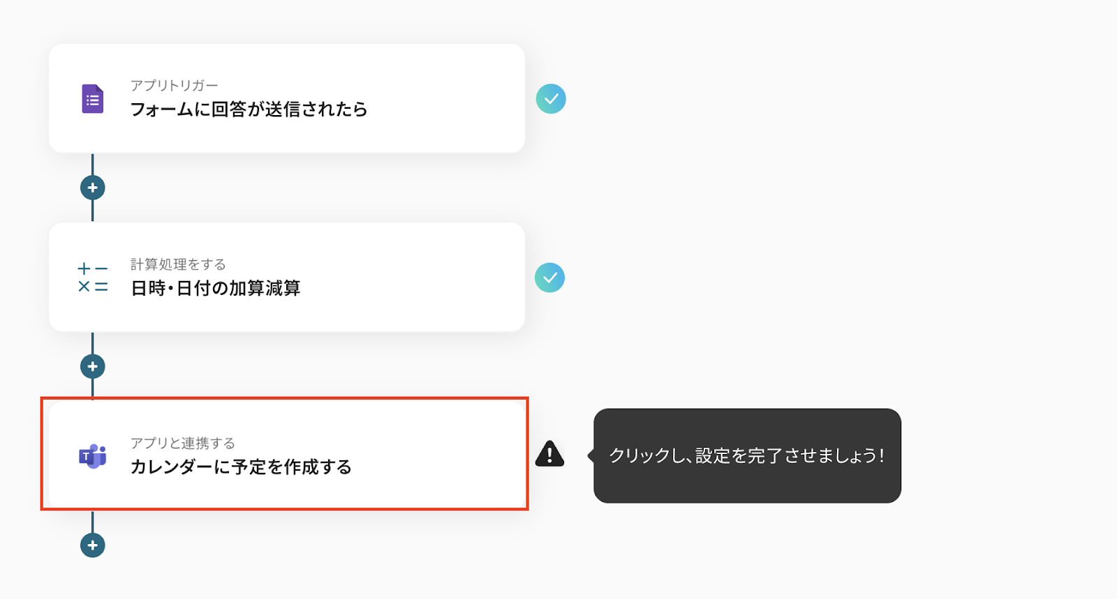 「カレンダーに予定を作成する」をクリックして、設定を進めましょう。
