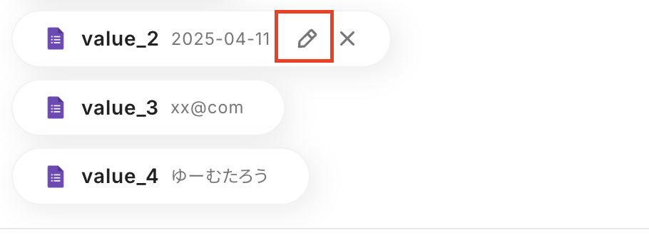 追加した項目名がすべてValueと記載されているので、鉛筆マークをクリックし、名前を変更します。
