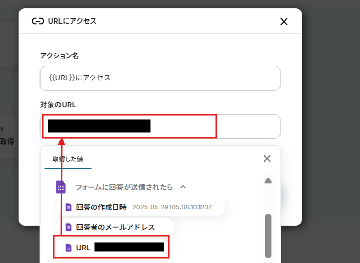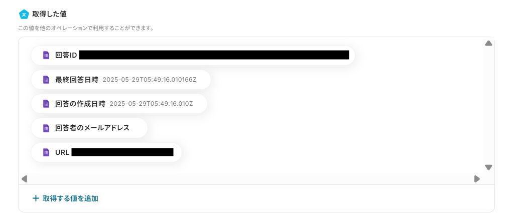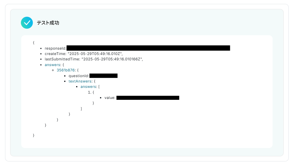 ・Googleフォームをトリガーとして使用した際の回答内容を取得する方法は下記をご参照ください。